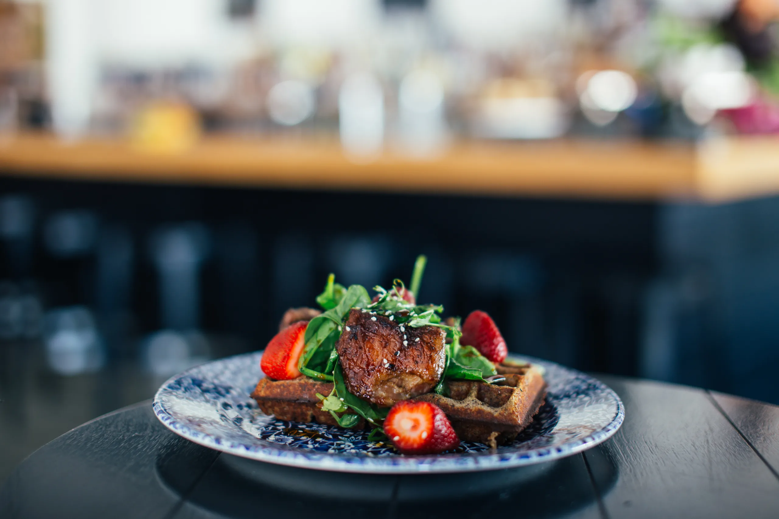 Strawberries are a juicy and sweet addition to any waffle dish and they have the added benefit of being packed with essential vitamins and minerals. The bright red color of the fruit also adds an attractive contrast to the golden brown waffle.
